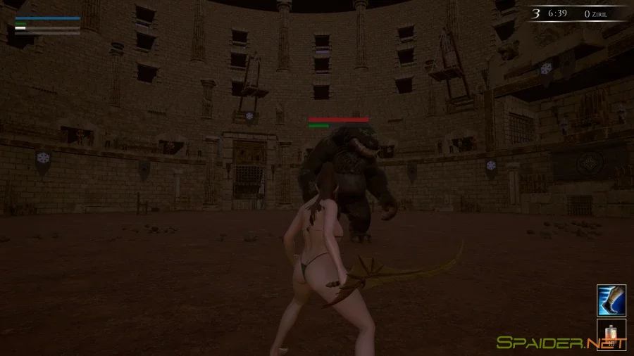 В этой игре нет смерти, но запланирована действительно интересная система поражения. Проиграв каким-нибудь монстрам… возможно, вы окажетесь в пещере, проиграв работорговцам… вы можете догадаться, куда это вас приведет.